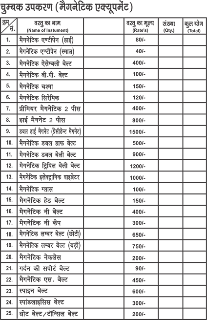 चुम्बक चिकित्सा के चुम्बकीय उपकरण