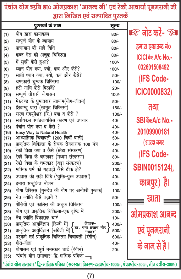 पंचांग योग द्वारा साधना एवं चिकित्सा