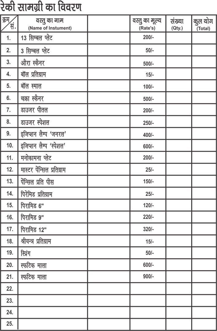 रेकी ट्रेनिंग में भाग लेने का प्रपत्र